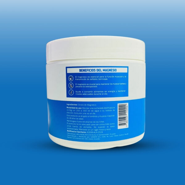 Crucial para la salud, participa en más de 300 reacciones enzimáticas y es vital para la función muscular, nerviosa, ósea y cardiovascular, además de la producción de energía y la síntesis de proteínas. Este suplemento es útil para ajustar niveles de magnesio en casos de deficiencia dietética, ofreciendo una forma conveniente que se absorbe eficientemente en el tracto gastrointestinal.